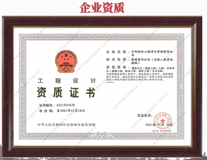 中科标禾工程项目管理有限公司成立于2004年2月,注 册资本5000万元。是一家致力于对建设项目全生命周期提供 组织、管理、经济和技术等各有关方面咨询的综合性工程服 务企业,包括全过程工程项目管理以及工程投资咨询、勘察、 设计、造价咨询、招标代理、工程监理、BIM技术咨询等专 业咨询服务。 公司现具有工程监理综合资质、工程造价甲级、工程招 标代理甲级、政府采购招标代理甲级、工程项目管理一等及 工程咨询、工程设计、勘察、交通监理、水利监理等专业资 质,并通过了ISO9001质量管理体系认证、ISO14001环境管理 体系认证、OHSA18001职业健康安全管理体系认证、服务质 量评价体系认证、工程监理规范体系认证、履约能力评价体 系认证和反贿赂资格认证。 公司业务范围涵盖了工程建设领域中的房屋建筑、公路 桥梁、水利工程、农业综合(含土地整理)、能源、环保工 程、市政公用工程、轨道交通、机场、港口等15个工程类别, 业务辐射全国27个省、市、自治区,拥有省内外共130多个 分支机构。