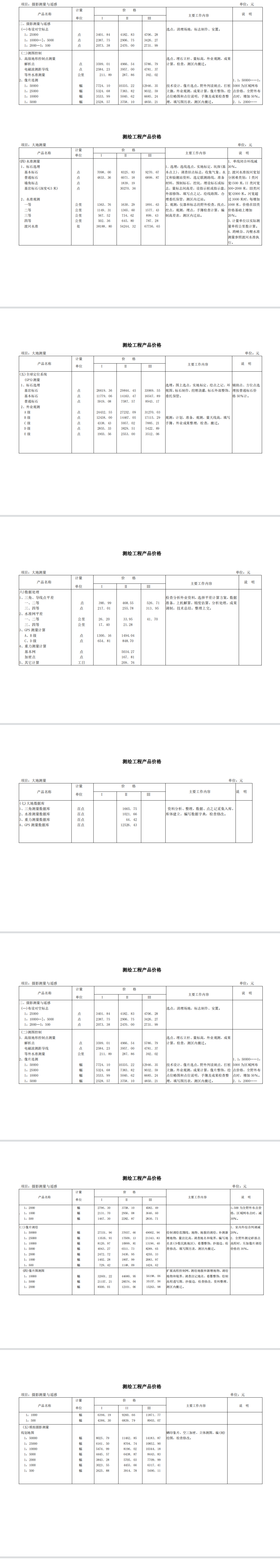 测 绘 工 程 产 品 价 格
